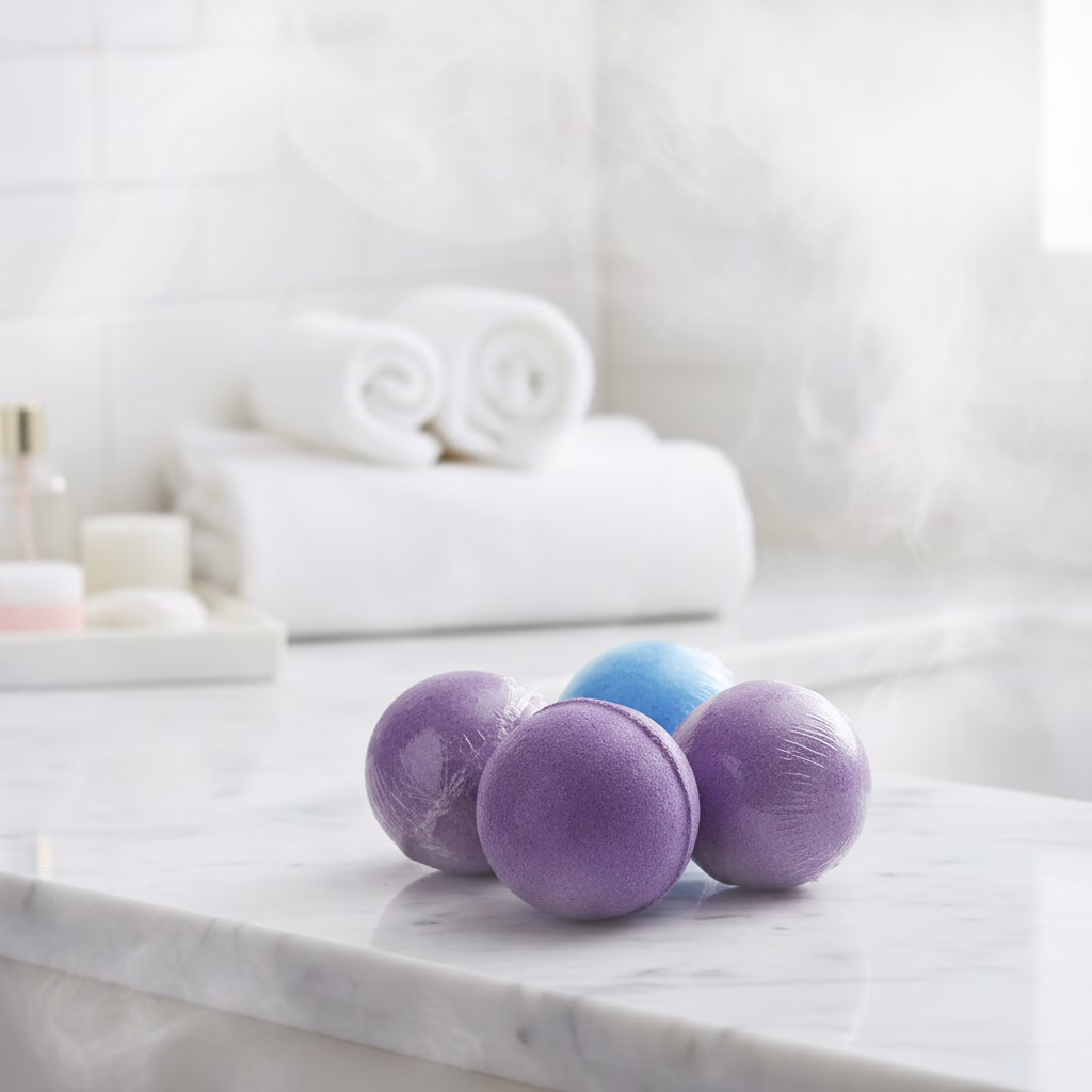 Using Scented Bath Bombs is simple. Fill your bathtub with warm water and drop a bath bomb in, allowing it to fizz and release its nourishing ingredients. Soak for 15–25 minutes to let your skin absorb the beneficial oils while enjoying the calming fragrances. For an enhanced experience, pair with scented candles, bath salts, or linen mists to create a complete home spa ritual that indulges your senses and restores balance to your mind and body.